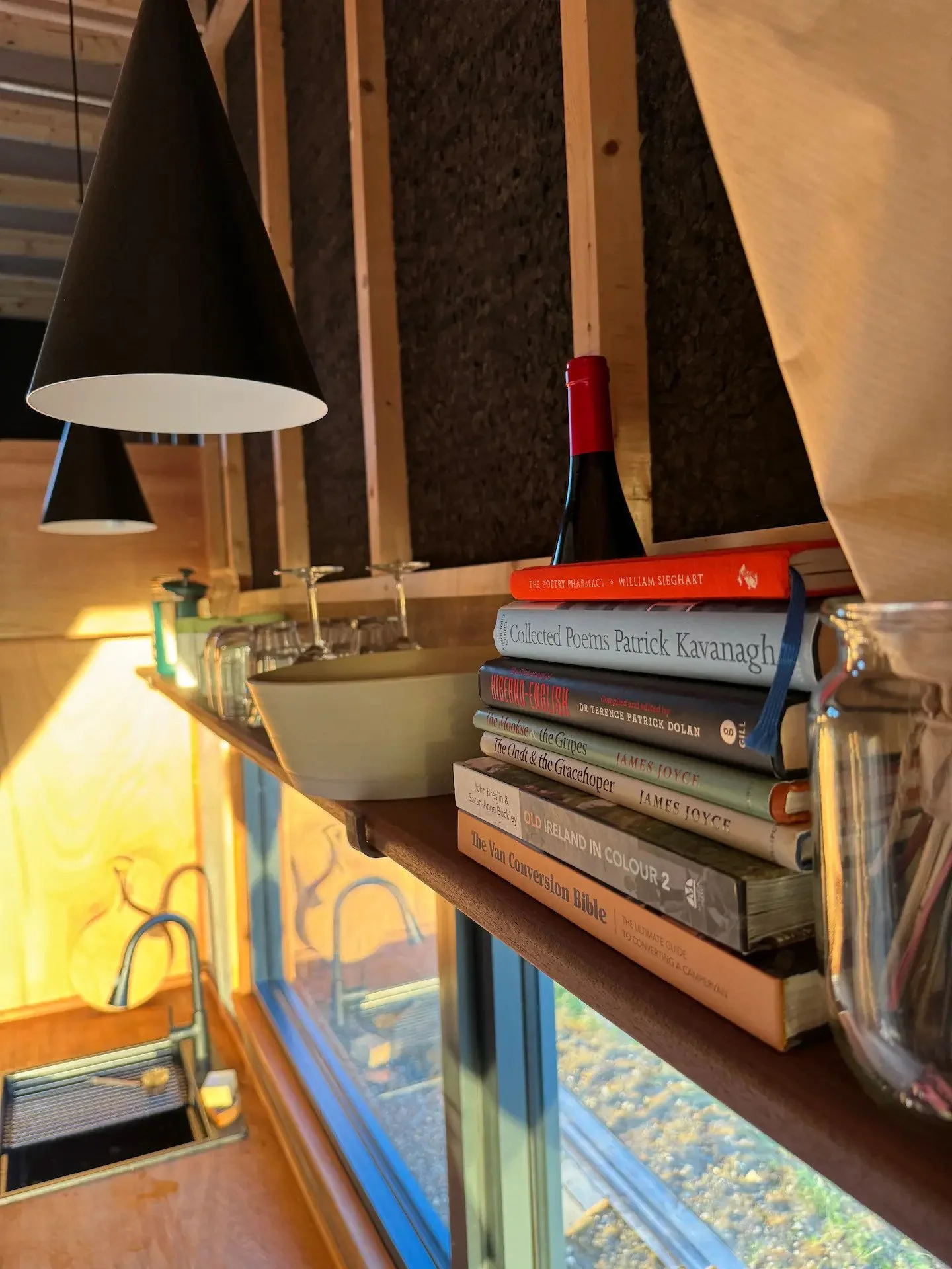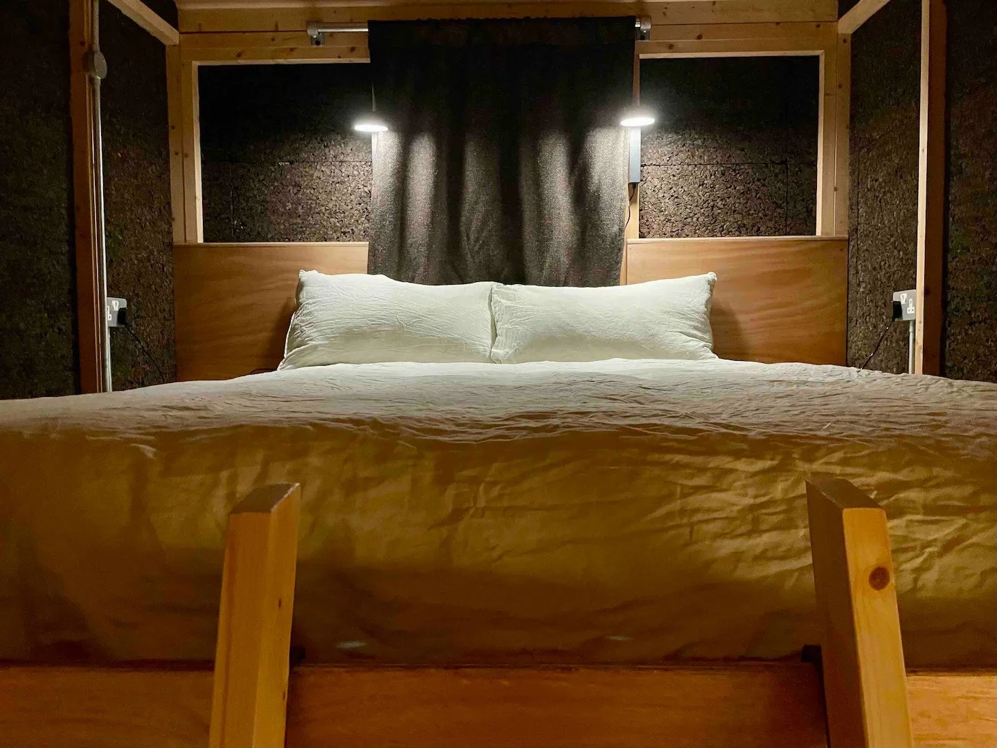 There are two sleeping areas in the Tigín, a double bed on the mezzanine and a single day bed at the main window.